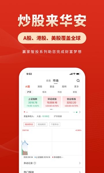华安证券依托大数据用户洞察及金融科技应用创新为广大投资者全新打造的官方专属手机炒股理财投资利器,除传统的开户、行情交易、资讯、理财商城、业务办理、投资者教育等综合金融理财服务外,华安证券APP通过智能投资服务平台为投资者提供智能预警、智能选股、智能盯盘、智能诊股、互联网投顾服务、账单等功能,满足用户在不同投资阶段的需求。