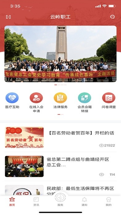 云岭职工补助报销app是云南省500万职工群众了解党和政府方针政策及工会工作的窗口,也是工会联系、服务职工群众的新平台,将为职工群众提供有效的、实时性强的各类动态、活动以及学习等功能。