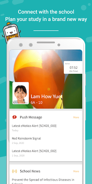 -- 学生会收到讯息提示新通告发放及签署限期,亦可查阅家长的签署状况