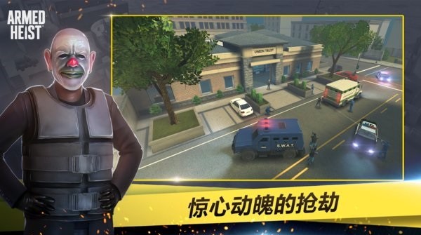 - 在你冒险洗劫银行时测试你的反应能力。一边躲避枪林弹雨,一边抢劫银行和装甲车,从未如此惊险刺激。