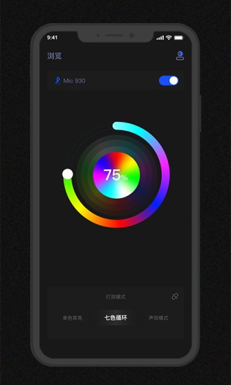Godox Mic APP是Godox公司,为旗下最新推出的RGB电竞麦克风而开发的移动应用。Godox Mic APP致力于为直播主播提供炫彩的麦克风效果,用户可以通过APP随心所欲的对麦克风的灯光效果进行设置。麦克风独有的7种颜色及5种灯效模式,可由麦克风对主播声音的感知、呈现不同颜色、节奏变化,以达到视觉与听觉的双重享受。