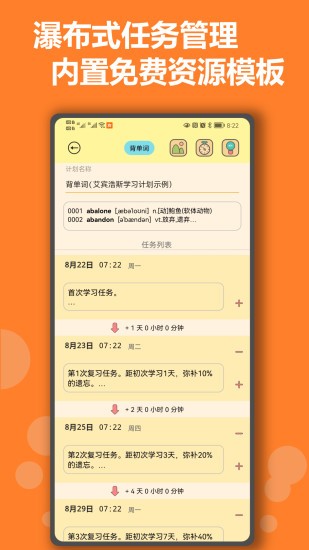 一键创建适合自己的艾宾浩斯记忆曲线计划并灵活设置计划内每个任务的打卡提醒。