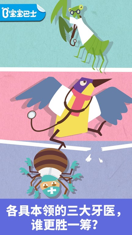 让宝宝体验牙医的治疗过程,帮宝宝克服对牙医和拔牙的恐惧!宝宝巴士儿童应用宝宝小牙医医院开张咯!各具本领的三个小牙医,用你意想不到的方式来保护牙齿!拔牙、治疗龋齿、牙齿清洁……各种牙齿问题,在这里都能顺利得到解决!这个医院里,没有吓人的大钳子和听诊器,只有有趣益智儿童早教互动!宝宝巴士,全球早教应用品牌,给宝宝一个快乐童年!