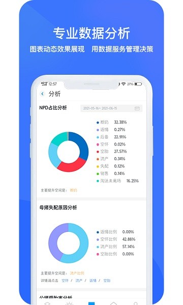提供各类数据分析报表,全面满足猪场的数据分析需求,便于快速找到猪场问题;