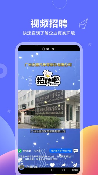 看视频就能全方位了解企业环境,工作要求,求职更便捷。