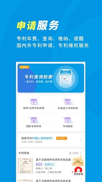 1、提供专利主分类号查询,查询专利主权利项、专利申请前检索、专利新颖性检索。