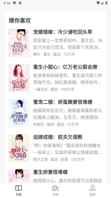 界面设计也很贴心,可以自己调节背景亮度和颜色,晚上看手机眼睛也不累。而且还能把喜欢的小说放在书架上,随时翻阅管理起来特别方便。每天都有新书更新,想看的好书永远追不完!这种阅读体验真的太棒了,感觉找到了一个专属自己的小说世界!