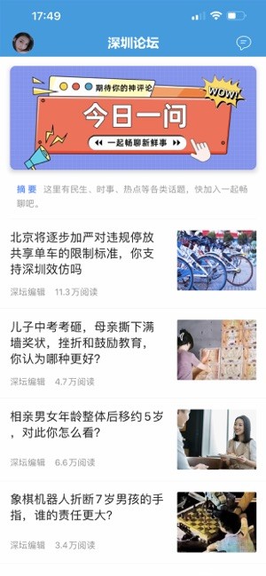 深圳论坛官方版是深圳人实用的论坛交友平台,聚焦热门话题、民生生活,实时更新,掌握身边大小事,支持掌上问政,覆盖生活方方面面,实时更新推送,在线评论,社区互动交流,一键发帖,分享趣事,找到更多志趣相投的伙伴!