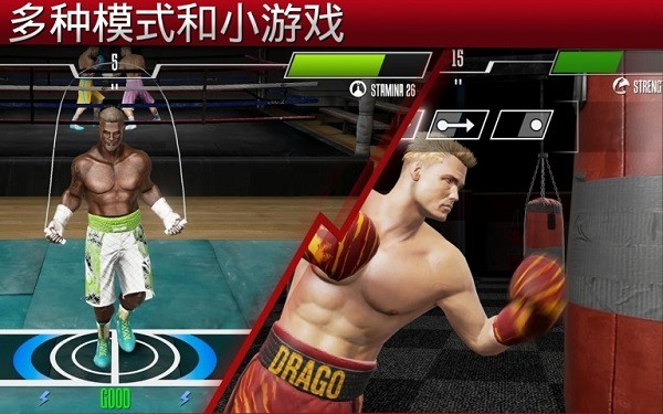 真实拳击2安卓版 化身传奇人物洛奇拳王,挑战阿波罗,拳击朗和德拉戈等人,成为世界冠军!第2回合准备好了吗?