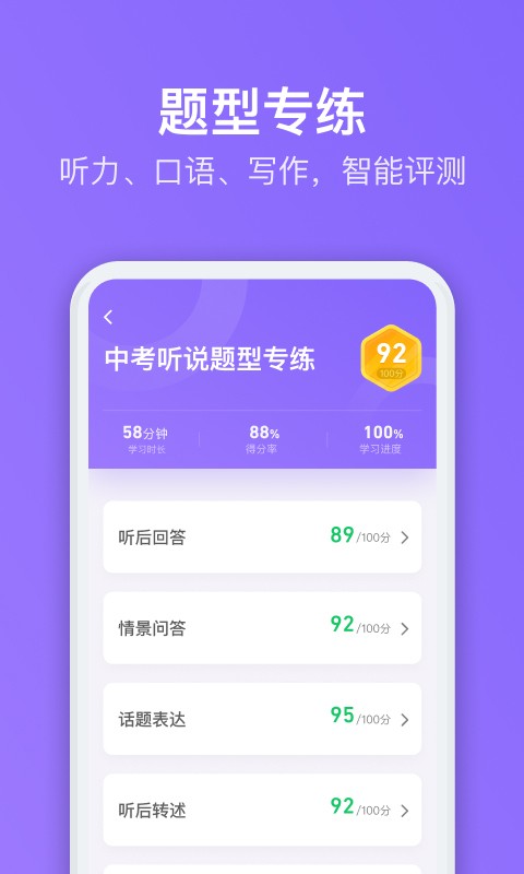 腾讯英语君中学版最新版是面向中学师生打造的教育辅导学习平台,提供中学真题考练相结合,帮助大家模拟备考,各种题型专项训练,还支持智能学情分析,致力于查漏补缺,不断巩固提高,精准全面提升大家的口语发音和英语读写的能力!