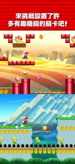 super mario run安卓版即超级马里奥跑酷游戏,是经典的休闲跑酷小游戏,画面精致卡通,玩法丰富有趣,关卡多种多样,难度不一,大量的硬币可以随你收集,更多的挑战待你体验,需要玩家操控马里奥跑酷前进,不断闯关,完成目标任务!
