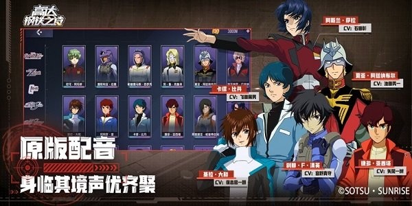 邀请了古谷彻、池田秀一、宫野真守等原作声优重新录制机体必杀技能喊话配音,为玩家带来沉浸式的体验。
