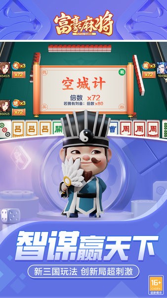 富豪麻将曾志伟代言手机版app是由途游游戏推出的麻将游戏合集,包括了疯狂十三幺、疯狂8红中等多种玩法,还集合了多个地方特色麻将;更有独创的三国玩法,不一样的麻将局,更加的紧张刺激。