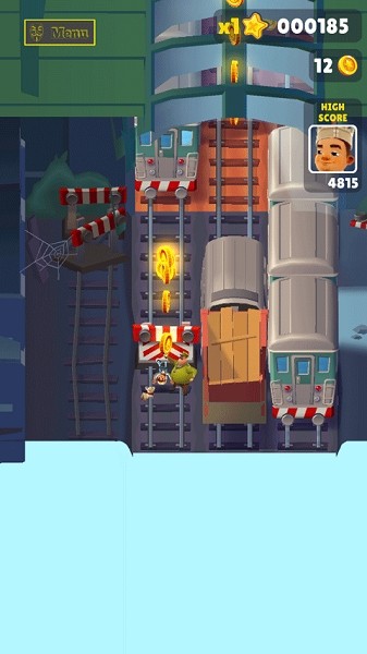 有地铁也会有山洞,中间有一根柱子,左右两边无规律会有火车奔过来,这个时候就要考验玩家的应变能力。