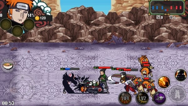 火影战记原版1.17官方正版是最经典的版本,之后的火影战记1.22、1.20、1.19等都是基因1.17制作的,包括新出的各种美化版、改版等。游戏中的角色全部是动漫火影忍者中的人物,还还原了忍术;玩家选中一个角色,和队友一起推掉对面的防御塔就可以获胜。