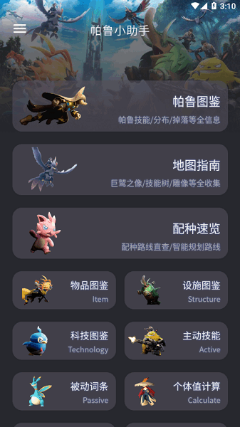 帕鲁小助手最新版是功能实用的游戏助手工具,涵盖丰富的内容和玩法攻略,可以轻松查询了解帕鲁的技能解析、分布区域等全信息,还提供地图指南、个体值计算、配种路线等功能,物品/设施等数据一目了然,助力玩耍挑战,值得推荐!
