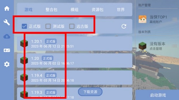接着就需要下载我的世界了,版本自行选择想玩的即可。