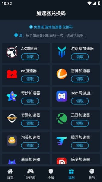 3.在福利界面可以免费领取雷神,炽焰,野豹,AK等加速器VIP会员。