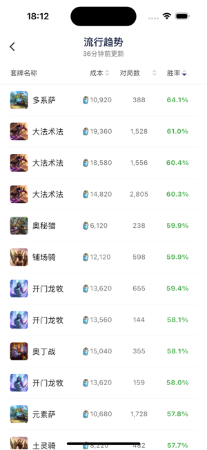 一款专为卡牌竞技游戏玩家设计的APP。在这里,您可以轻松获取各个职业胜率、热门卡组胜率、套牌信息以及详细的卡牌资料,帮助您在对局中做出明智的决策,提升您的天梯竞技排行,酒馆战棋排名。