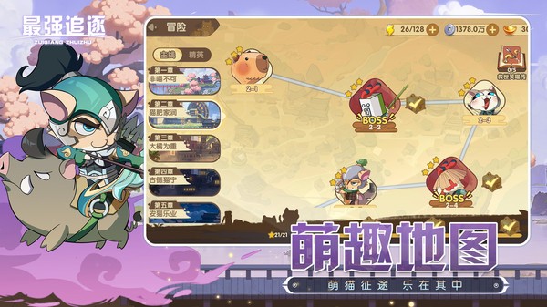 《最强追逐》是一款以萌猫元素的跑酷冒险、弹幕射击游戏,玩家将组建萌猫队伍,穿越各种历史场景,收集宝物,击败敌人,解锁新角色,体验一场速度与激情的冒险。
