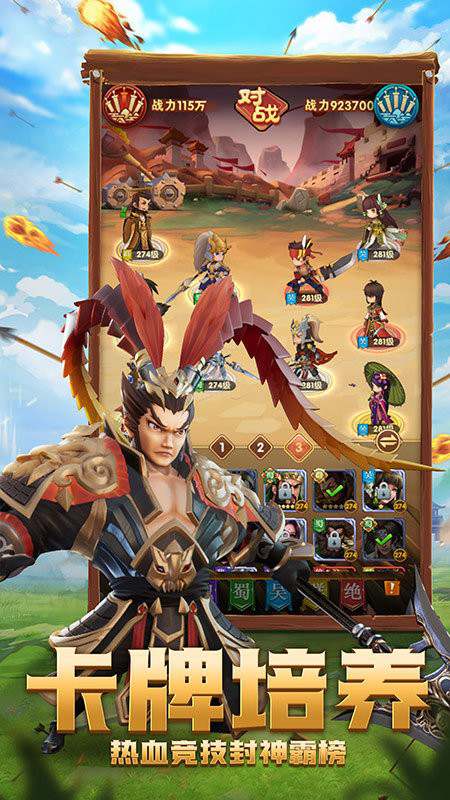在游戏中,近百位三国将领自由选择、个性培养,组建你专属的阵容!游戏提供丰富的剧情探索、征战闯关、随机副本等趣味挑战,以及军团竟备对抗、争夺资源等多种竞技模式,最大限度再现波澜壮阔、英雄辈出的三国战争史诗!
