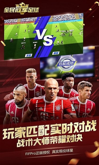 《全民冠军足球安卓版》是由FIFPro官方正版授权的一款策略经营足球游戏,拥有2000+名真实球员实名登场。游戏采用全球领先的惯性与动作捕捉技术以及真实球员参与动作录制。除球员外,还摇拥有皇马,拜仁等多家豪门俱乐部的授权。游戏独创了”英雄时刻”玩法,让玩家体验亲临比赛现场般的操作感受,是一款真正为全世界足球爱好者量身定制的高品质足球手游。