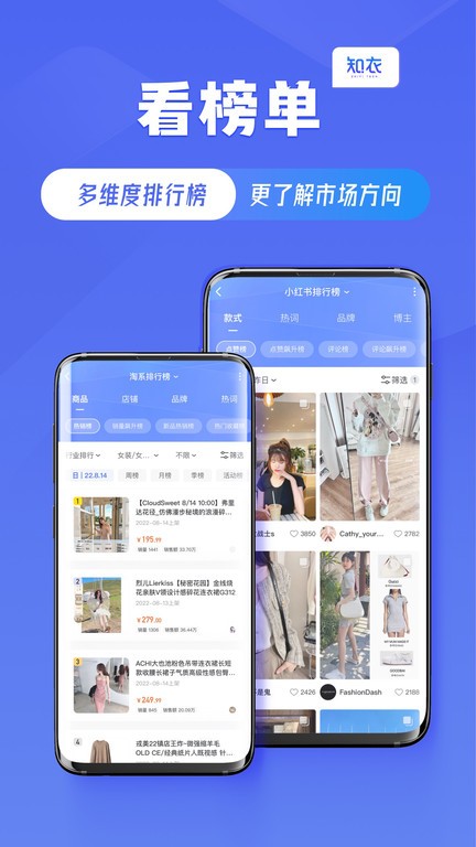 知衣,是知衣科技打造的电商大数据趋势追踪和时尚热点挖掘工具,全面提升女装、男装、童装、鞋类及家居服等行业下的运营、选品及营销效率。我们努力打造一款覆盖全网爆款的选品工具,为商品及设计师们提升选品效率。我们客观呈现行业、品牌、店铺和商品的动态,让市场及运营人员及时获悉最新电商玩法。我们提供专业的行业趋势报告,致力帮助服装设计及企划人员获取最新流行趋势。我们提供在线工作台服务,为企业实现在线协作和数字资产管理提供支持。
