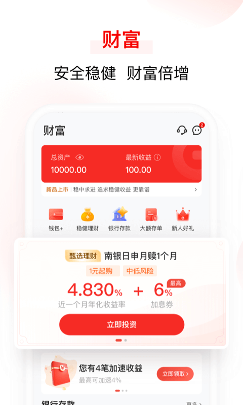 为您提供银行存款、投资理财、保障保险、信用借款等一站式金融服务。
