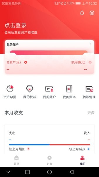 我的:个人管理中心,资产总览和交易明细为客户提供清晰的财务管理服务。