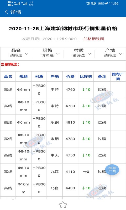 实时了解各项钢铁产品的市场价格,让用户掌握更多商品实时价格数据;