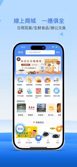 网上商城物品丰富、贩卖机自助购物、物流配送服务到家、CTM积分兑换等;