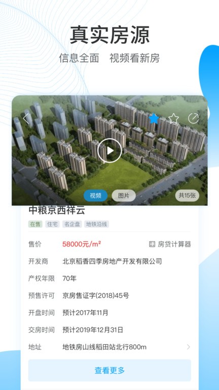 提供新房、二手房、租房房源信息,并且可以通过地图、区域、价格、户型、类型、面积多种筛选条件和10多种特色标签找到合适的房源。