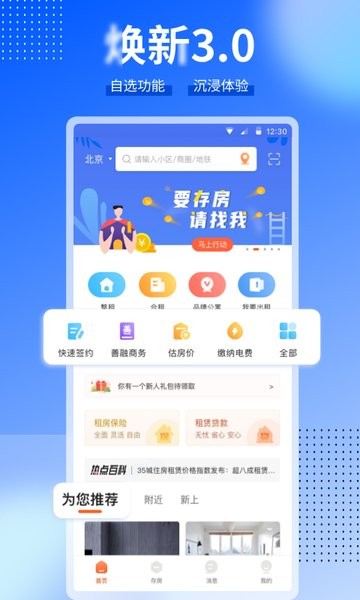 服务:集在线看房、预约看房、在线预定、在线签约、在线保修、租赁贷款、服务评价和意见反馈便民服务