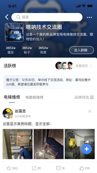 (3)同城共享:维保单位加入同城共享社圈,可发布共享工单,实现快速响应,及时解决问题,提高维保服务质量;