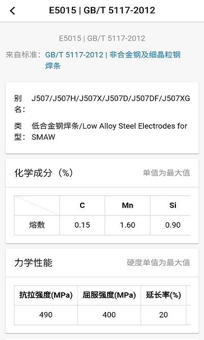 焊林院已经囊括了百万条国内外金属和焊材标准数据库,用户可方便查询到某一焊接材料类型或金属材料牌号的力学性能和化学成分,并可看到标准全文,分享到电脑下载;