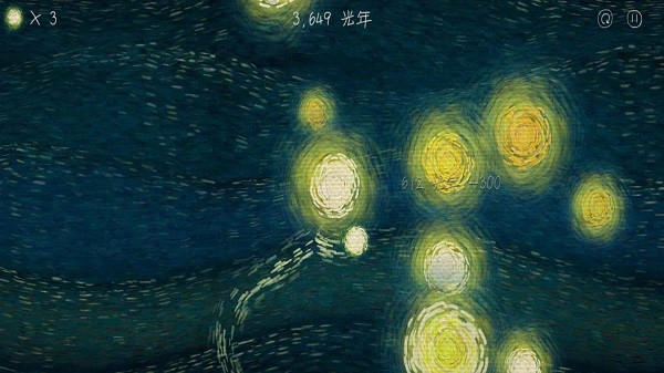 1、以画家梵高的作品星空作为游戏背景,在星星中不断穿梭前进,十分震撼。
