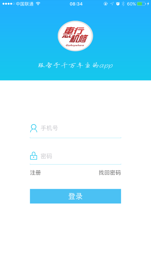 安装 APP 后进入惠行机修的系统界面,首次使?需要注册新?户。