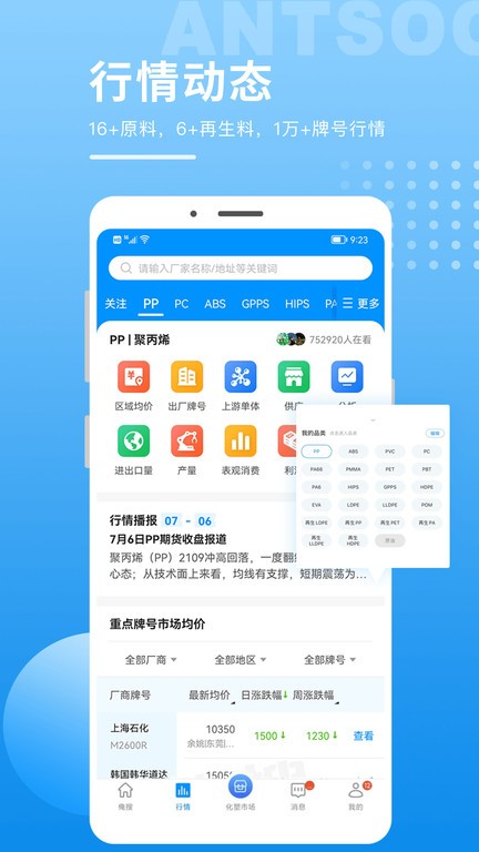 ・俺搜实时更新20+品类、40+城市、400+厂家、10000+塑料牌号现货报价,可查看市场均价、出厂均价、区域均价、上游单体均价、进出口量、产量、库存、开工率、利润等近1年历史数据走势,更全、更专业的分析预测监控价格波动,未来走势不迷茫!