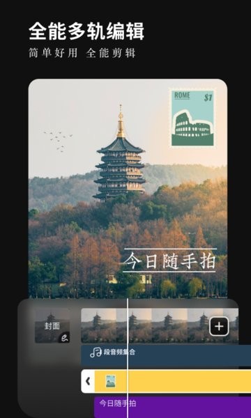 简易的配乐剪切、音量调节功能,打造个性音响效果。