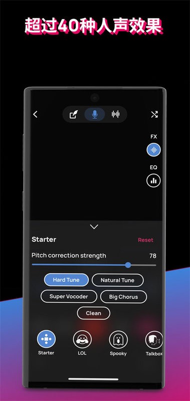 Voloco拥有50多种效果,分为12个预设包。探索混响和自动语音调谐等基本效果,或在录音机和换音器中变换您的声音。