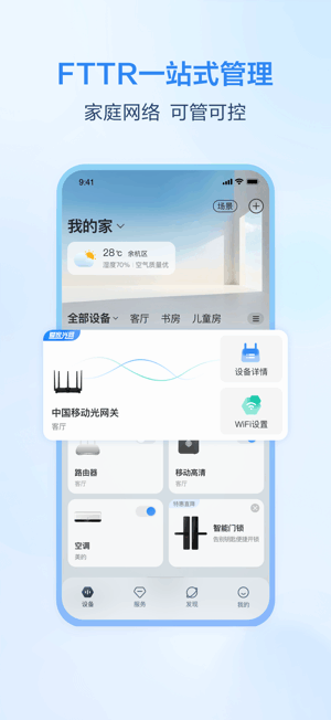我最近也在用这个APP,发现真的很方便。绑定摄像头后,随时随地都能看家里的动态,还可以设置各种模式,比如离家时自动关灯锁门,看电影时调暗灯光,这些小细节设计得很贴心。再加上FTTR管理功能,家里网络状态一目了然,设备接入也更方便了。对于追求智能生活的人来说,移动爱家APP绝对是个好帮手!