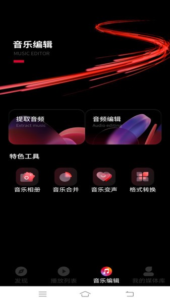 音乐相册、音乐合并、音乐变声、格式转换、音乐降噪、变调变速等