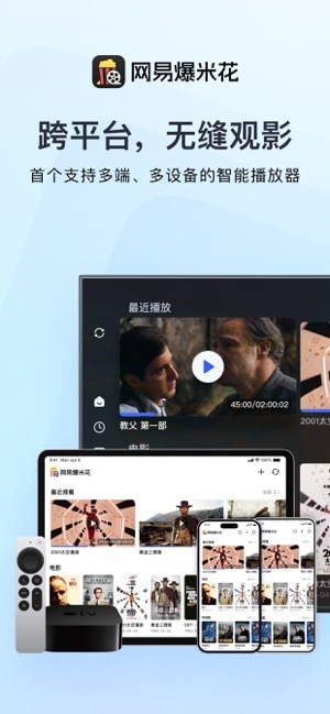 网易爆米花支持手机、电视、平板、电脑等多终端跨平台观影。您可以在不同设备上无缝切换,继续观看之前未完成的影片。同时,播放器还支持同步影视资源和播放记录,让您随时随地都能享受到个性化的观影体验。