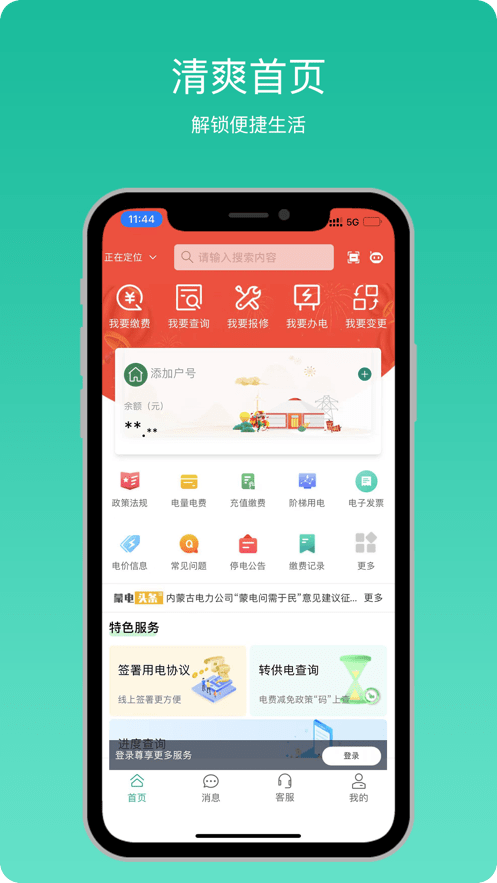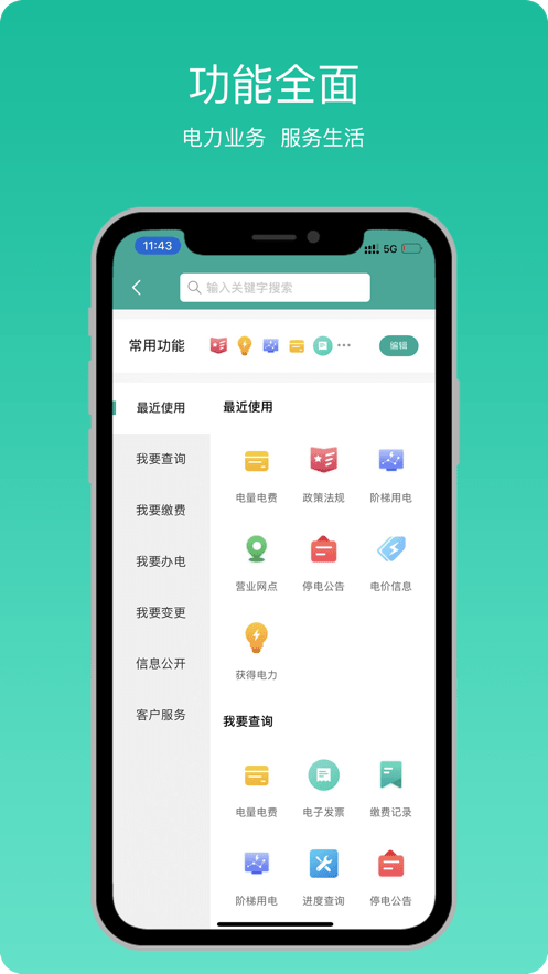 一站式电力服务,智能缴费、自助充值和电量电费查询、办电申请等在线办理;