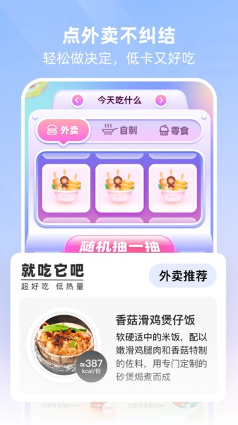 基于个人数据,智能计算每日热量缺口,生成属于你的饮食方案,吃得好,肉肉才能变少