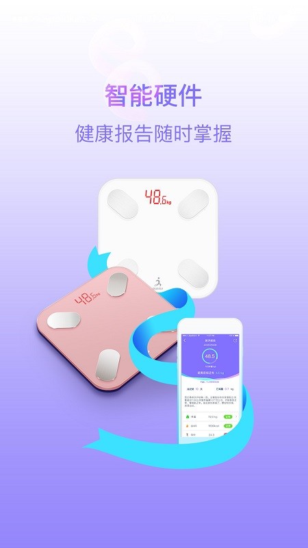 同步智能健康秤数据,生成详细的测评报告、健康曲线、记步减脂路上的点滴成就。