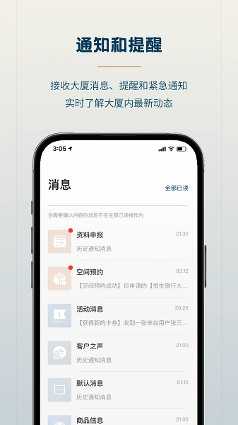 接收大厦消息、提醒和紧急通知,实时了解大厦内最新动态