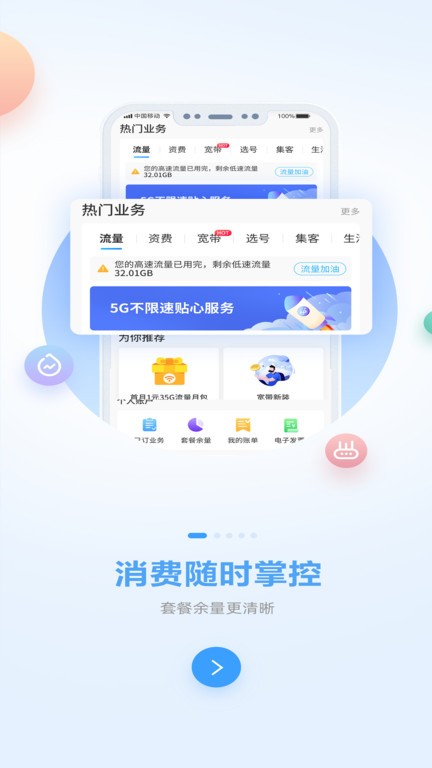 流量、话费、余额、积分、消费账单等随时随地查询。