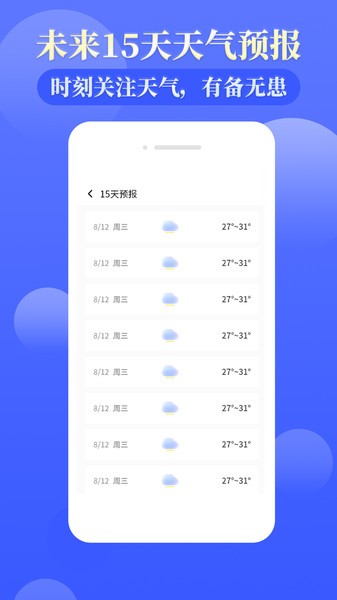 -- 未来15天天气预报,时刻关注天气,有备无患;