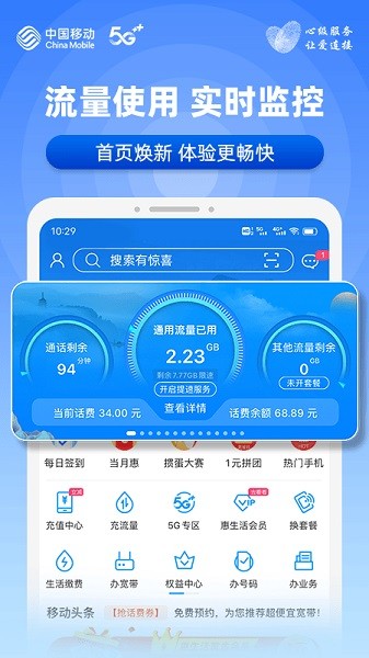 1、在这里可以让你来办理和解决更多的移动相关服务,还会让你来领取更多奖励。